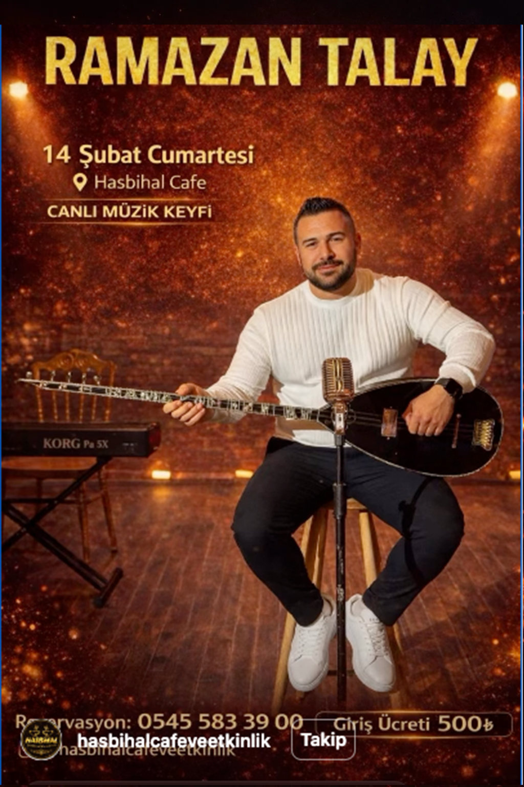 14 Şubat Cumartesi: Ramazan Talay 📍 Yer: Hasbihal Cafe (Yeni Yönetim, Yeni Vizyon) ☎️ Rezervasyon: 0545 583 39 00