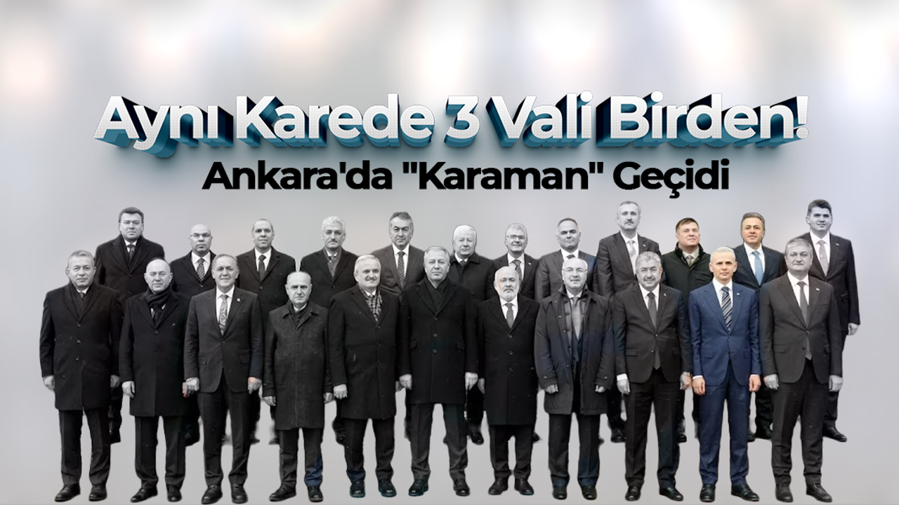 Valiler Kararnamesi sonrası İçişleri Bakanlığı’nda düzenlenen değerlendirme toplantısı, Karaman açısından tarihi bir anekdota sahne oldu. Görev yerleri değişen ve yeni atanan valilerin bir araya geldiği toplantıda çekilen aile fotoğrafında, Karaman ile yolu kesişen 3 ismin yer alması gözlerden kaçmadı.