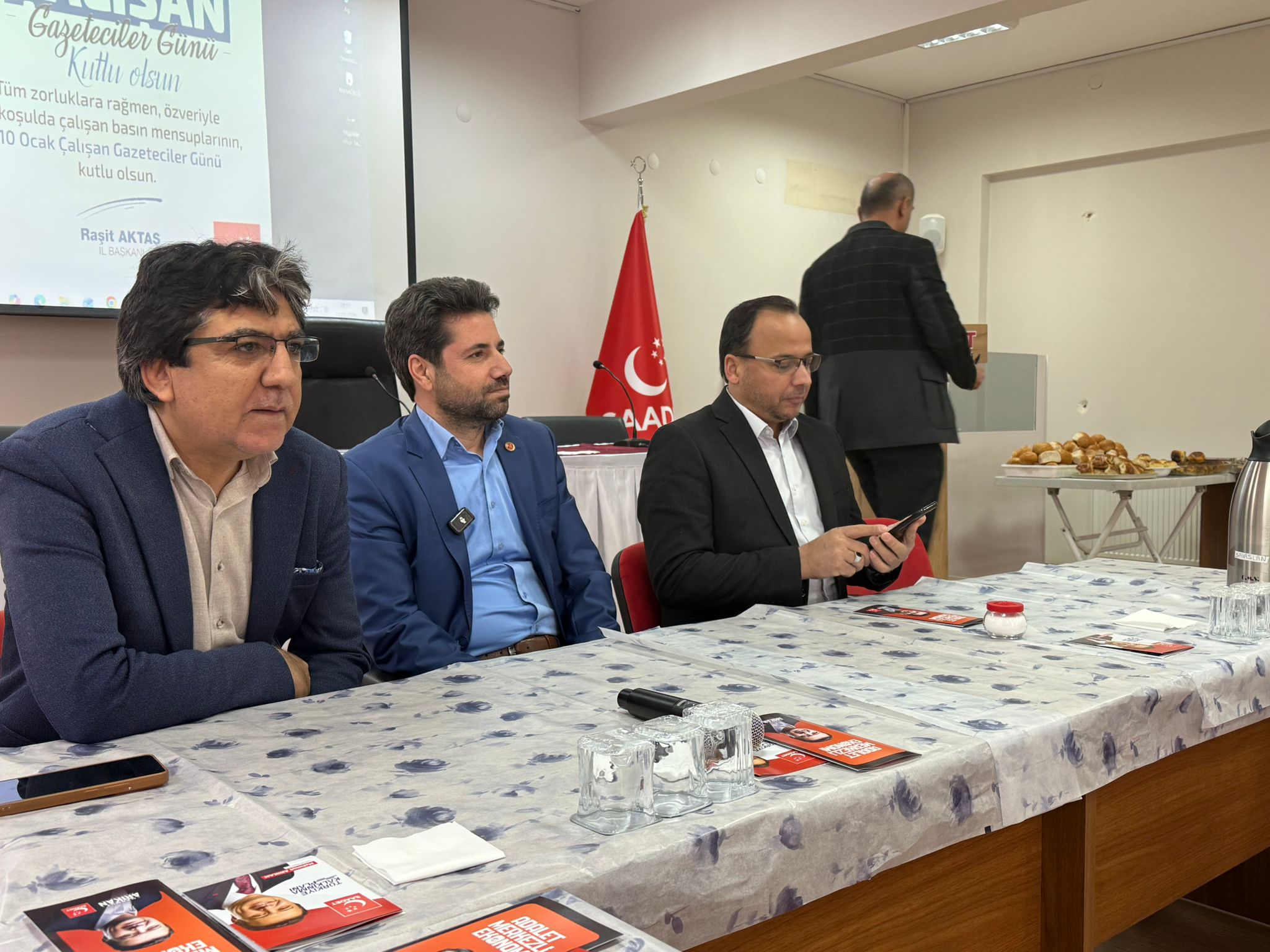 Programın ev sahipliğini yapan Saadet Partisi'nin yeni İl Başkanı Raşit Aktaş, basın mensuplarıyla tek tek ilgilenerek sohbet etti.