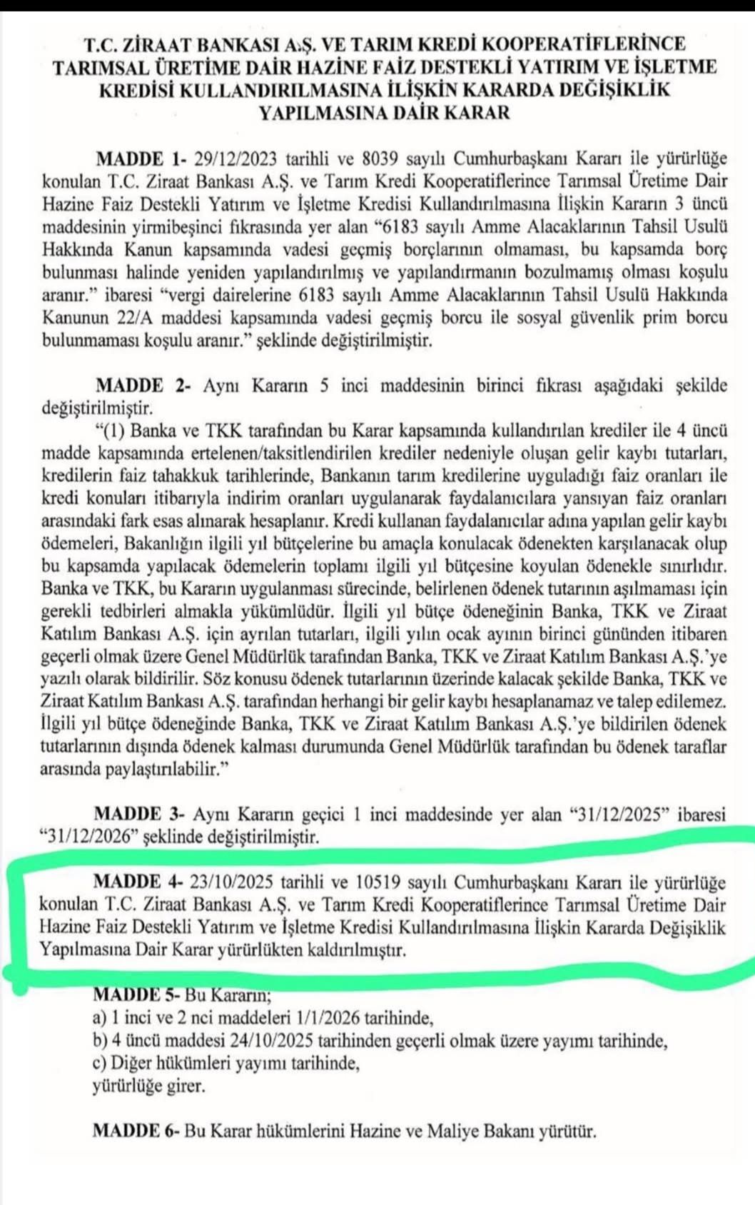 Sektör temsilcileri ve çiftçi örgütlerinin ortak tepkisi kısa sürede yankı buldu. Gelen itirazlar ve üretici birliklerinin girişimleri sonrası, Hazine destekli sübvansiyonlu kredilerde faiz oranlarının artırılmasına yönelik kararname geri çekildi.