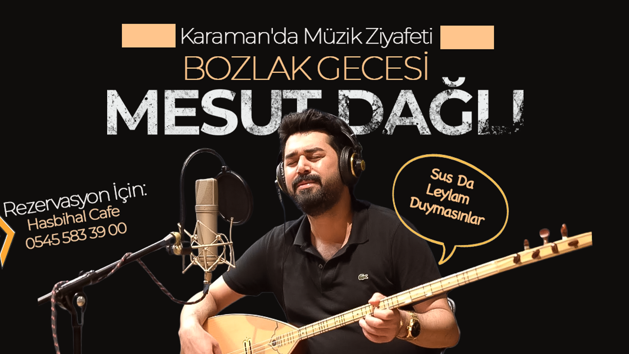 Karaman’da "gönülleri sazın tezenesi ile buluşturan mekân" olarak bilinen Hasbihal Cafe, yenilenen yüzü ve güçlü kadrosuyla müzikseverleri unutulmaz bir geceye davet ediyor. 5 Nisan Pazar akşamı sevilen sanatçı Mesut Dağlı’nın sahne alacağı "Bozlak Gecesi", Karamanlılara türkü dolu anlar yaşatacak.