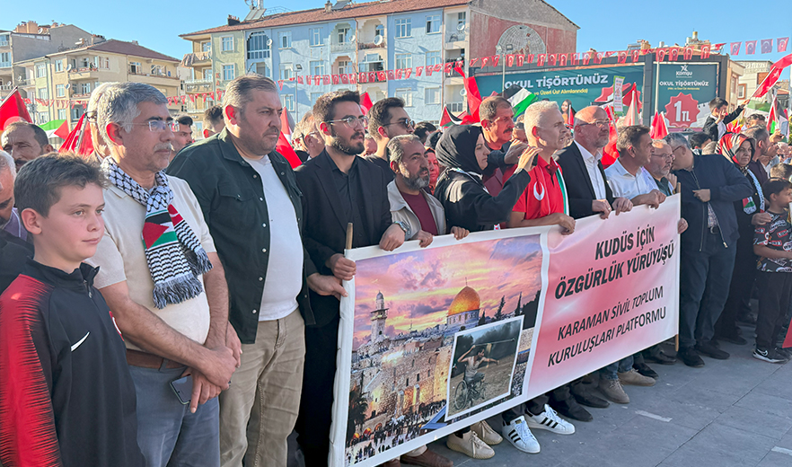 Program Pazar günü saat 16.30’da Arapoğlu Camii önünden başladı ve Aktekke Meydanı’nda sona erdi. Yürüyüşe Karaman Valisi Mehmet Fatih Çiçekli, eşi Esengül Korkmaz Çiçekli, AK Parti Karaman Teşkilatı, Saadet Partisi temsilcileri, çok sayıda sivil toplum kuruluşu ve binlerce Karamanlı katıldı. Tekbirler ve sloganlar eşliğinde yürüyen vatandaşlar, “Gazze’nin yanındayız” mesajı verdi, İsrail’i kınadı.