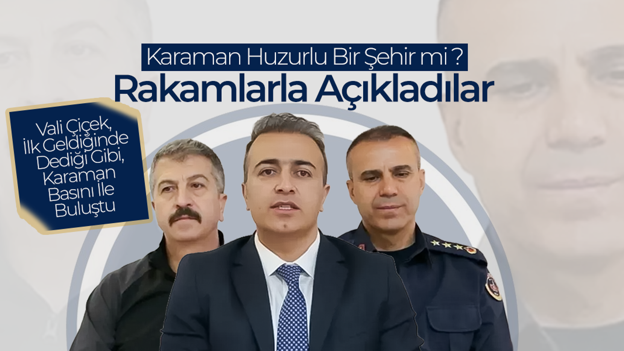 İçişleri Bakanlığı’nın şeffaflık talimatları doğrultusunda 1 Ocak 2026'dan bugüne kadar geçen üç aylık süreci değerlendiren Vali Çiçek, Karaman'ın asayiş bilançosunu detaylarıyla aktardı.