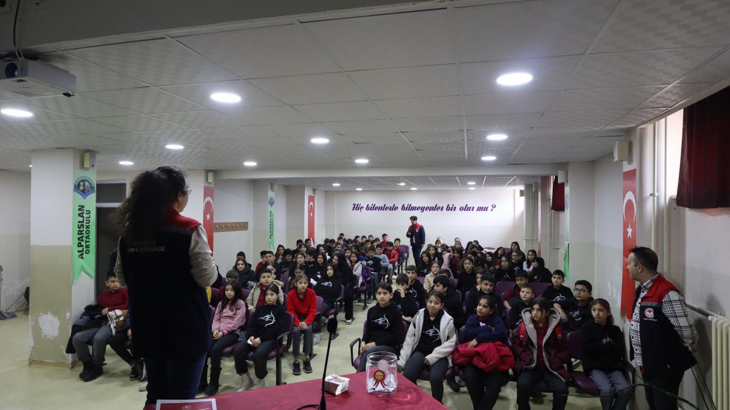 Bilinçli bir toplumun temelinin çocuk yaşta atılacağı gerçeğinden yola çıkan Müdürlük personelleri; Cemile Çıbık Sarı, Halil Ağca, Merve Yelboğa ve Dilara Kaçal, öğrencilere uzmanlık alanlarıyla ilgili sunumlar yaptı.