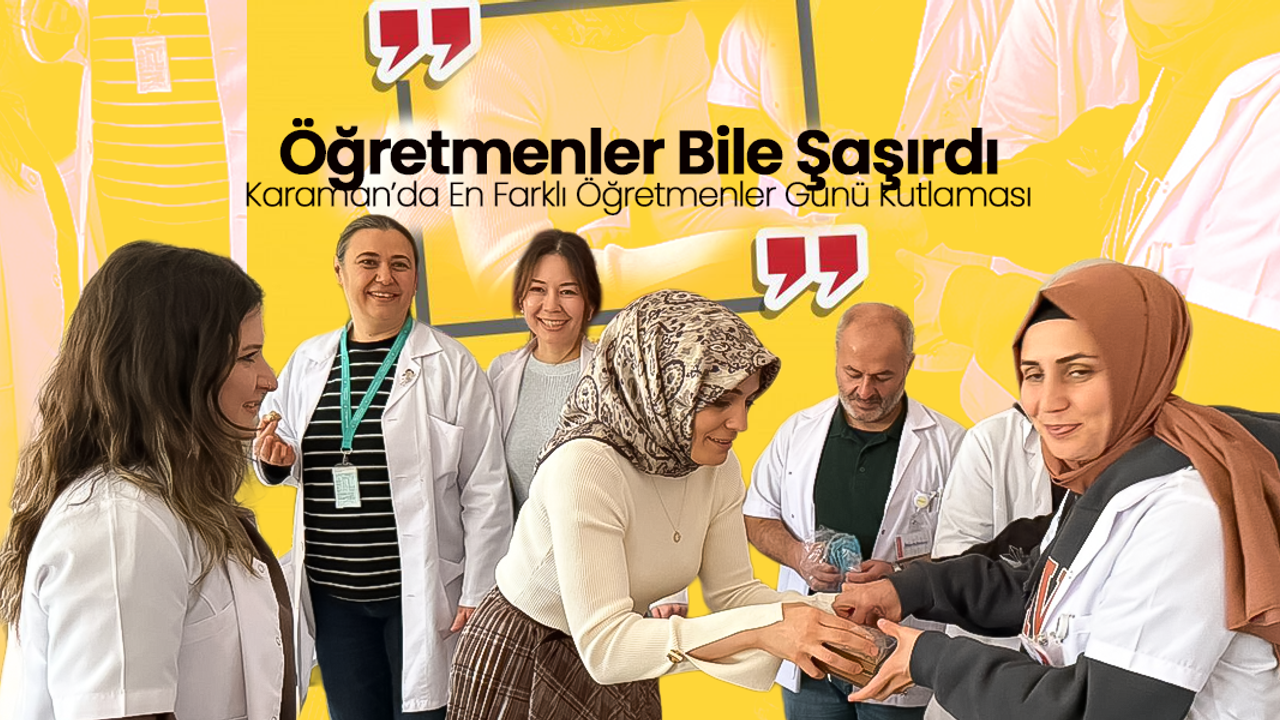 Karamanoğlu Mehmetbey Mahallesi’nde hizmet veren 6 Nolu Aile Sağlığı Merkezi’nin doktor ve hemşireleri, 24 Kasım Öğretmenler Günü dolayısıyla Karaman Fatih Anadolu Lisesi öğretmenlerini ziyaret ederek güzel bir sürprize imza attı.