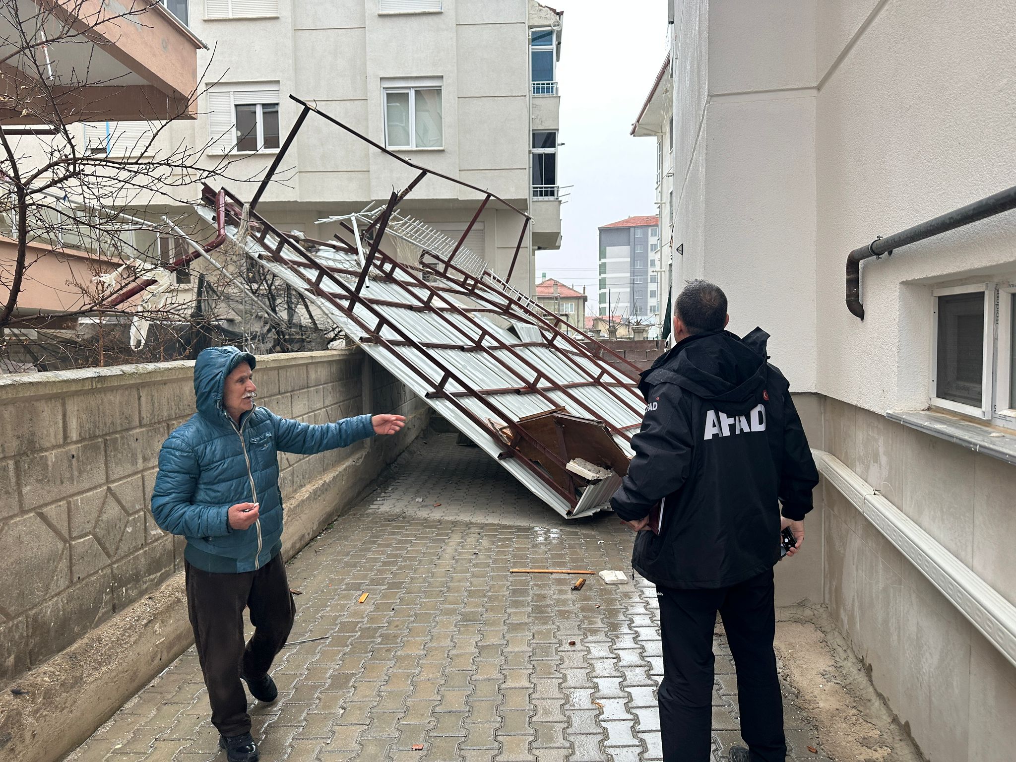 Şeyh Edebali Mahallesi'ndeki Merkez Spor Salonu’nun çatısı uçtu, parçalar yola savrularak trafiği tehlikeye düşürdü.