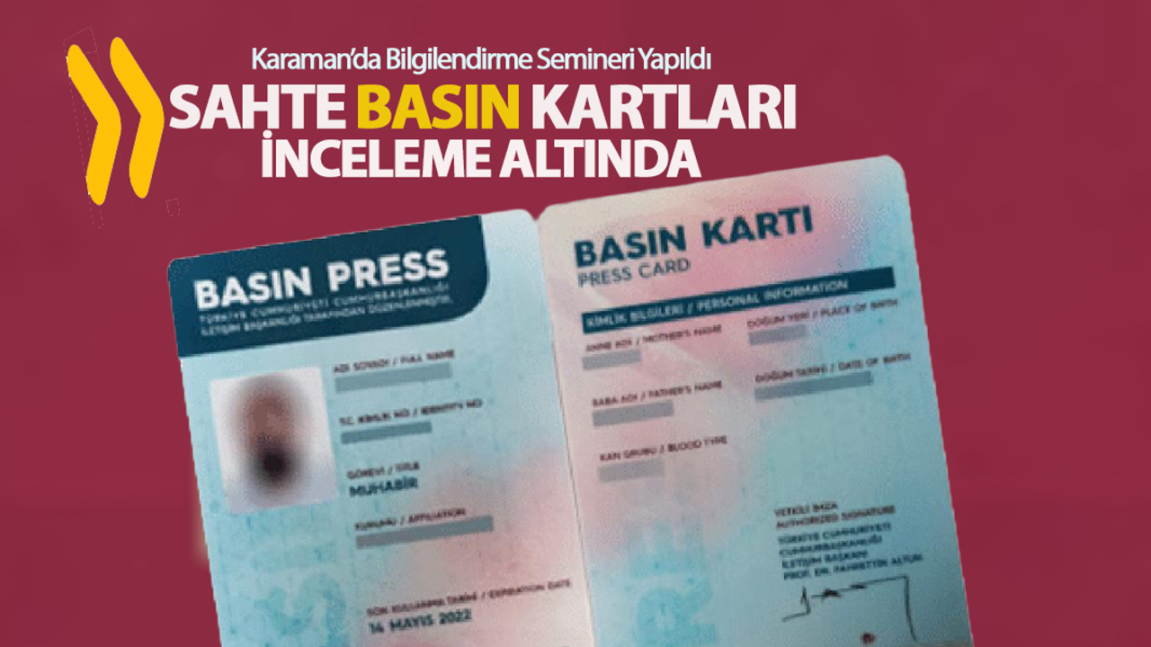 Karaman’da emniyet ve jandarma personeline, Cumhurbaşkanlığı İletişim Başkanlığı tarafından verilen resmi nitelikteki basın kartlarının özellikleri ve sahte kartların tespit edilmesi konusunda bilgilendirme yapıldı.