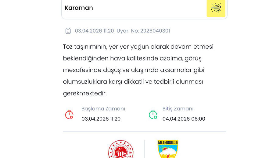 Kuzey Afrika'dan kalkan ve rüzgarlarla taşınarak İç Anadolu Bölgesi'ne kadar ulaşan toz bulutları, Karaman'da günlük yaşamı olumsuz etkilemeye başladı. Kent genelinde görüş mesafesinde gözle görülür bir azalma yaşanırken, özellikle sabah ve akşam saatlerinde gökyüzünü kaplayan sarımtırak ve puslu hava dikkat çekti.