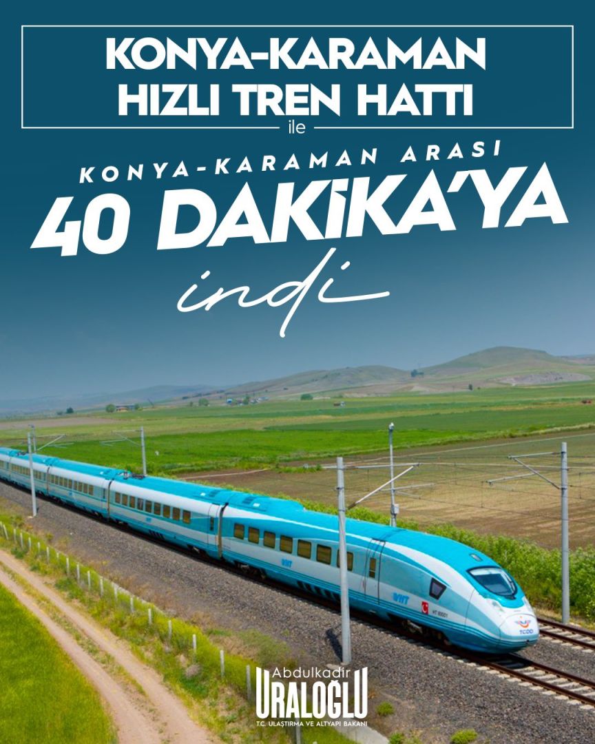 Ulaştırma ve Altyapı Bakanı Abdulkadir Uraloğlu, Karaman–Konya Hızlı Tren Hattı ile iki şehir arasındaki ulaşım süresinin 40 dakikaya indirildiğini açıkladı. Bu gelişme vatandaşlar için büyük kolaylık sağlarken, her gün Konya'dan günübirlik gelip giden akademisyenlerin mesai yolculuğunu da "şehir içi ulaşım" süresine indirdi.