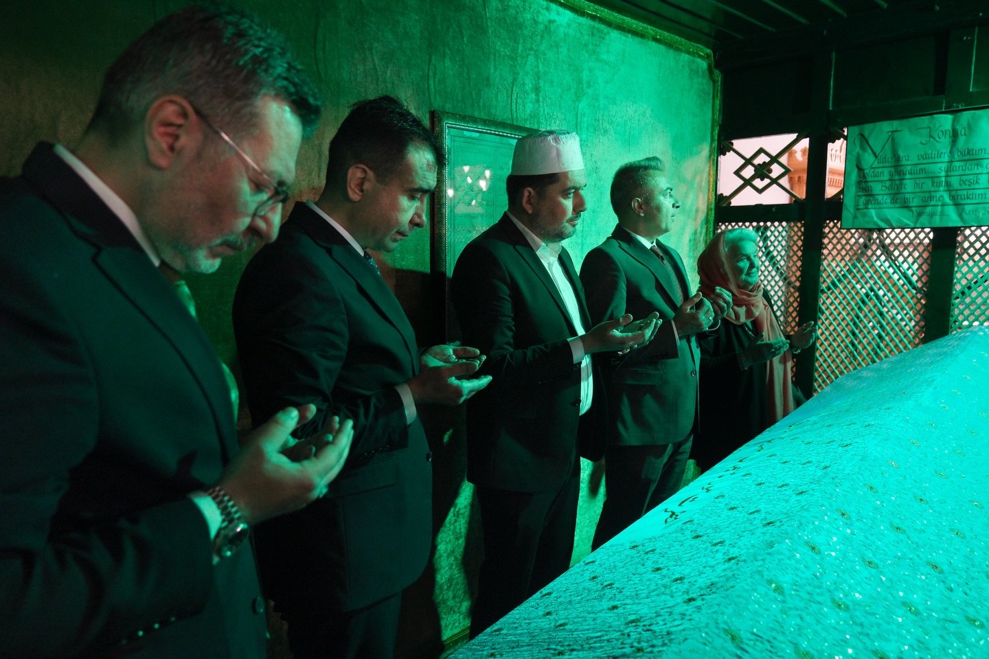 Program, Hz. Mevlâna’nın annesi Mümine Hatun, ağabeyi ve akrabalarının ebedi istirahatgahı olan Aktekke Camii ziyaretiyle başladı. Kur’an-ı Kerim tilavetinin ardından, bu manevi yolculuğun kazasız belasız tamamlanması için dualar edildi.