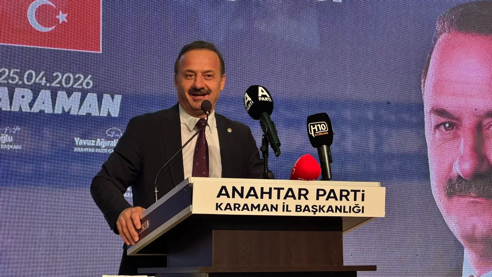 Anahtar Parti Lideri Yavuz Ağıralioğlu, Karaman’da katıldığı programda ezber bozan bir idari sınır önerisinde bulundu. Mersin’in Mut ilçesinin coğrafi olarak Karaman’a daha yakın olduğunu belirten Ağıralioğlu, "Mut’un canı çıkıyor Mersin’e gidene kadar. Bağla Karaman’a, Karaman büyüsün, Mutlular da mutlu olsun" dedi.