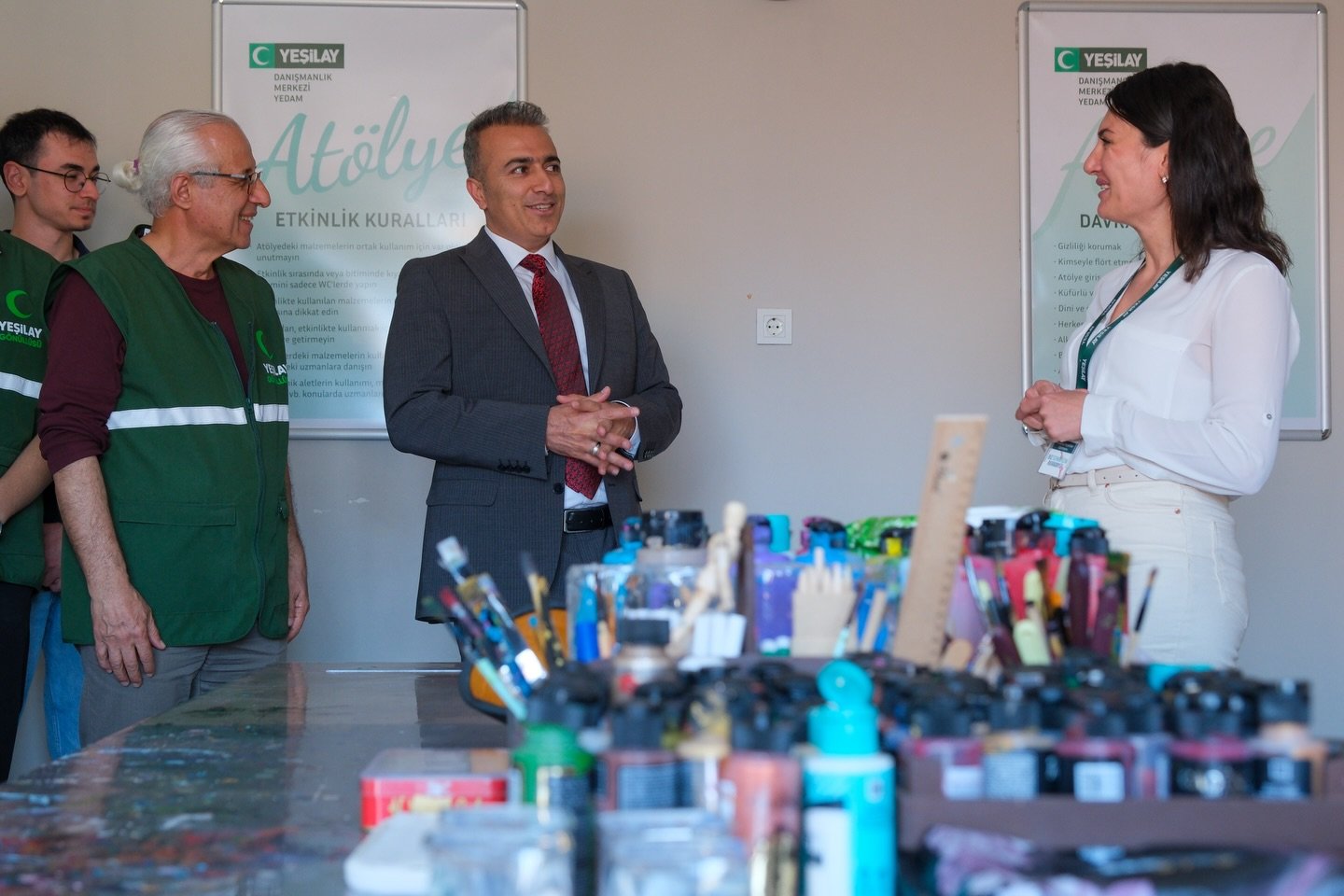 Vali Çiçek, ziyaret programı kapsamında YEDAM bünyesindeki atölyeleri de gezerek danışanlara sunulan imkânları yerinde gördü. Merkezde yürütülen;